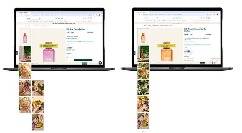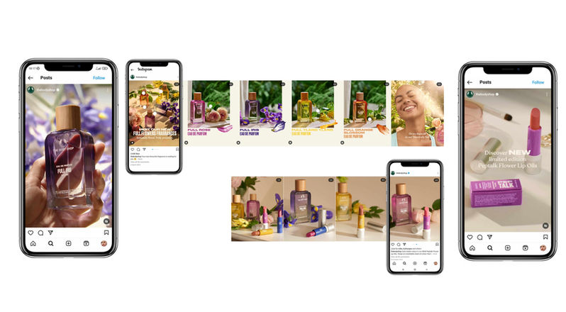 Full campaign marketing suite for the brand, The Body Shop and their new scent rage Full Flowers.